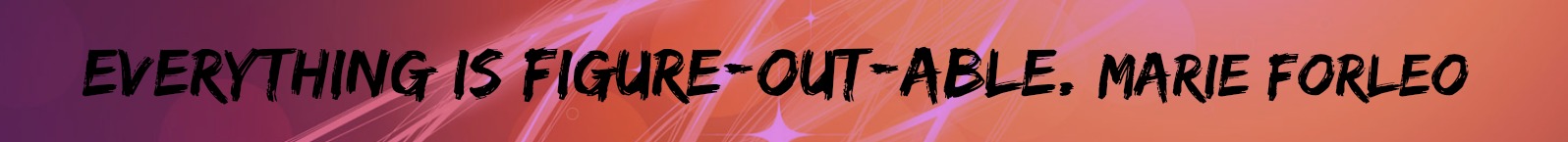 Oprah has identified Marie as a thought leader for the new generation, a passing of the torch so to speak. If you haven’t heard of her (yet) you will. Her purpose is helping others create business and life success. What makes her totally unique is that she does it with so much heart, a healthy dose of humor and genuine humanity. One of the things her mama taught her was that ‘everything is figure-out-abe.” What simple advice. Sometimes our problems seem so overwhelming and insurmountable we get into a pretzel twist just thinking about them. If instead we accept as, “figure-out-able” not only does it evoke a smile and create a well spring of optimism it opens the heart and allows accesses to higher order thinking and greater problem solving ability! It diminishes the impact of said ‘problem’ and brings fun and creativity to the adventure.