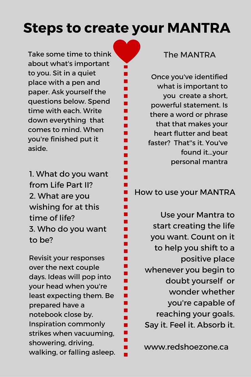 Use Mantras as a reminders to stay true to what you feel inside. Count on them to help shift you to a positive place, whenever you start to doubt yourself or wonder whether you are capable of achieving your goals.