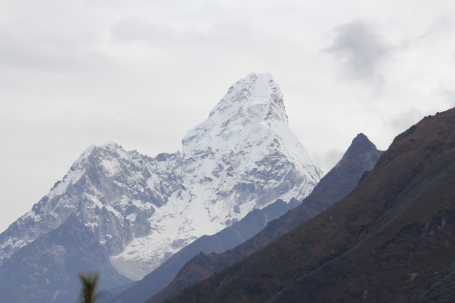 BARB: Ama Dablam is 6812m – a tall thin mountain. Over the days we saw 3 sides of her, as if we kind of walked around her. She seemed to me to be watching, always there, sometimes in sun, sometimes shaded. Also kind of graceful in a range full of jagged mountains. It is a mountain known for its beauty.