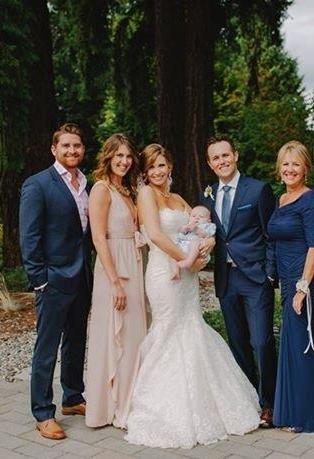 Lorriane’s mom and husband Mark are reflected in the eyes of her children Tyler (right) Chelsea (left).Pictured with spouses Hayley and Kevin and first grand baby Bowen