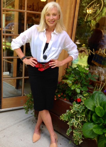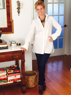 Cheryl: I do love my white shirt…but I wear it ONE way — with jeans. I really want to turn over a new (fashion) leaf….show me how to be more creative and playful!