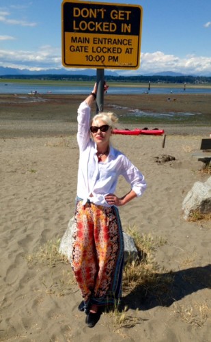 Every time I’m with Micolle I come home inspired and I rediscover stuff I forgot I had or pushed to the back of the closet. My husband was the cell phone wielding photographer for this piece and throughout he kept saying, “you should dress like this more often.” I know what he meant I felt different. It was Fun, Playful and free. Colourful. With Micolle’s help I shall bravely continue…just call me a (fashion) work in progress. I saved this Top 5 pic for last…look at the sign! Is this a message or what??!!