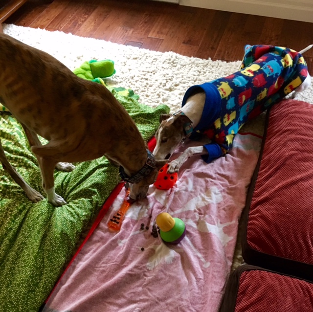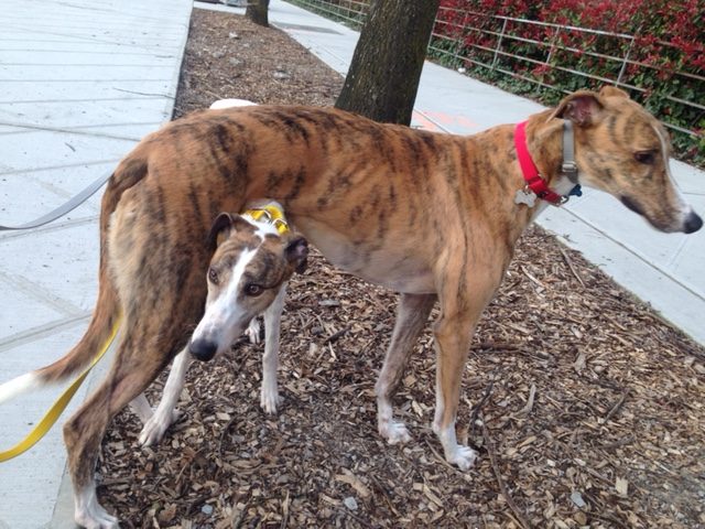 We’ve become good friends with a devoted greyhound family (they’ve had greyhounds for 25 years and have 2 ‘toddlers’ at home too). They are a godsend and support us in every way. We have a standing Friday date to walk dogs and have coffee – social time for all of us parents and kids. Funny I used to do the same thing on Fridays with my mom’s group…25 years ago….playground…coffee.