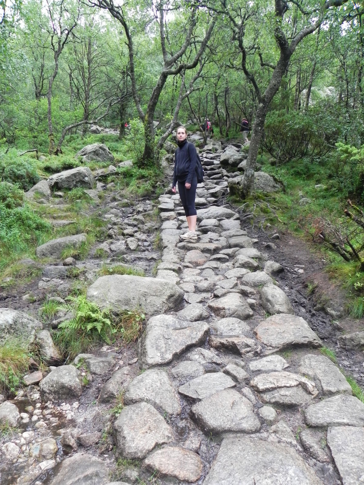 I must have said “oh my god” a thousand times. This was supposed to be a two hour trip up and a two hour trip down. HA! It took us slightly over two hours just to get to the top and finally see Pulpit Rock. Google it and see how gorgeous it is. When the sun is shining and it’s not completely enveloped in clouds. Like it was the day we were there. And now we had to go back down…